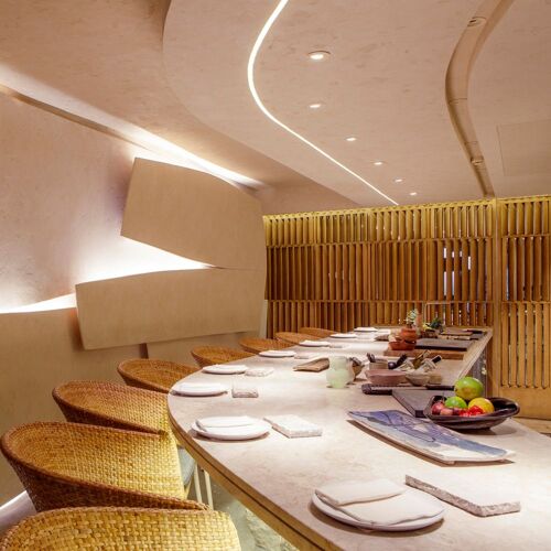 Located in The Alley, a buzzing part of Karrivin, this discreet gem blends intimacy with finesse. Ring the bell to enter a chic space in which a sculptural marble counter seats eight facing the open kitchen. Light floors, wooden slats and a textured feature wall add modern charm. Chef JP Cruz reimagines Filipino cuisine with flair. Standouts include yellowtail amberjack and choco tarte – delivered with seamless, warm interaction in a calm, elegant setting.