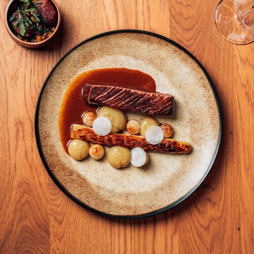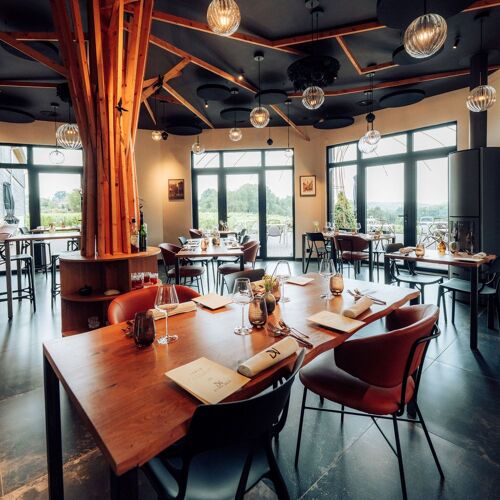 Trois amis de l’école d’hôtellerie namuroise se sont installés au domaine viticole de Dièdre Noir. Leur restaurant en pierres naturelles et en bois clair ne manque pas de raffinement, avec une jolie vue sur le vignoble. Ne manquez pas la terrasse ! Vous y trouverez une formule fixe qui propose une bistronomie moderne. Prenez, par exemple, une truite saumonée avec une sauce au satay et des textures de rutabaga et de maïs, un plat chaleureux. Mais les chefs se tournent aussi du côté de l’Asie avec un dashi et des algues aux nuances d’umami. Une cuisine de produits généreuse que complètera à merveille l’un des délicieux vins du domaine.