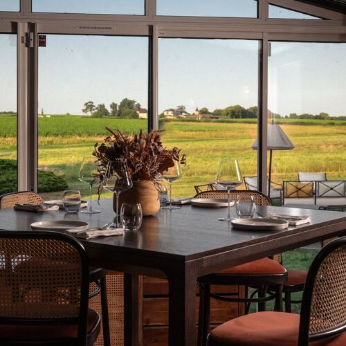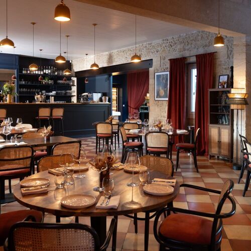 Dans une charmante bâtisse de pierre au cœur du petit village viticole de Sauternes, le chef Yoann Amado, passé par les cuisines d’Éric Frechon au Bristol (Paris) et de la Maison Claude Darroze (Langon), compose une partition brillante, entre finesse, audace et parfaite maîtrise. À ses côtés, Juliette Bonnard, pâtissière inspirée, signe des desserts tout en fraîcheur et en équilibre. Bœuf et huître en tartare au couteau relevé au raifort et riz soufflé, suprême de pigeonneau grillé aux sarments de vigne et sauce diable, soufflé léger au chocolat Guanaja et sorbet au bas-armagnac : chaque plat célèbre le produit avec panache. Service aux petits soins, vins du château de haut vol, terrasse bucolique tournée vers le Château Guiraud : une table où l'on est assuré de passer un très bon moment.
