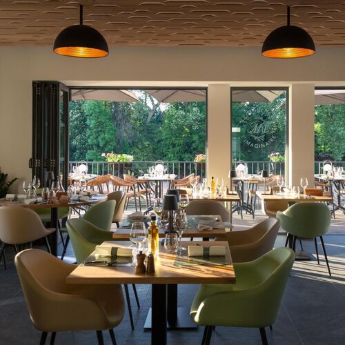 Authentique briviste, la cheffe défend avec gourmandise une cuisine de tradition généreuse où les produits du terroir local sont légion : œuf au plat, lard croustillant et galette de pomme de terre nouvelle ; tête de veau, sauce ravigote ; pintade fermière aux carottes ; gâteau moelleux aux noix, crème anglaise. Cet ancien moulin rénové des bords de la Vézère (on peut encore observer sous le sol vitré de l’entrée les anciens rouages) s’est mué en bistrot contemporain dont la terrasse suspendue au-dessus de la rivière est tournée vers le Pont Vieux du 12e s.