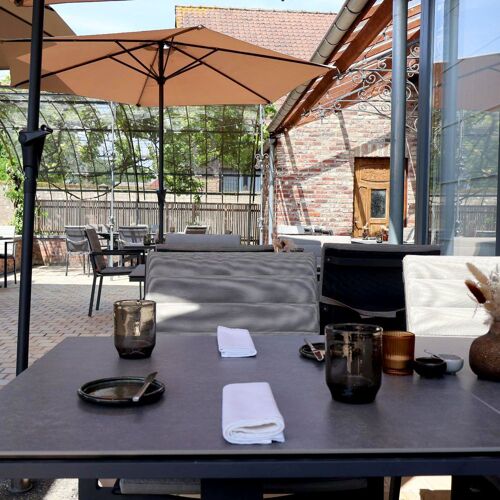 Oltra fait référence à l’ancien nom latin du village Outer. Ce restaurant vous accueillera dans une ambiance conviviale et un cadre chargé d’histoire. Les ornements campagnards, comme les carreaux de pierre provenant d’une église et le fer forgé soulignent cette atmosphère agréable. Une jeune équipe est aux manettes. Iwert assure un service attentionné et prodigue ses conseils œnologiques, tandis que le chef Jonathan met sa créativité au service de la cuisine française. Il s’appuie sur des saveurs telles que la citronnelle ou le vinaigre pour élaborer des assiettes regorgeant de fraîcheur. Il associe ainsi des structures de tomate et des olives vertes à l’umami de crevettes de la mer du Nord, une glace au raifort pour une touche épicée et un jus de tomate et verveine. Une affaire de passion, c’est une évidence.