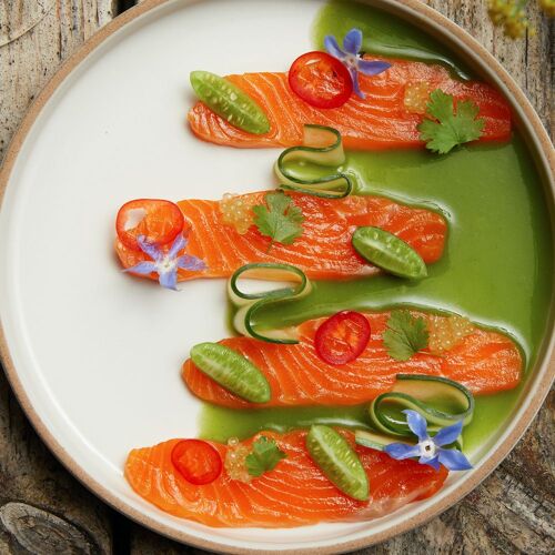 With its whitewashed exterior and thatched roof, this village pub certainly looks the part. Guests are welcomed by the relaxed team into a low-beamed room, where they can enjoy a full meal or a pint at the bar with nibbles. Pub classics run alongside more elaborate dishes, which are united by their well-sourced ingredients and careful preparation. While it may sound simple, the French onion soup sums up everything the kitchen does well – hearty, big-flavoured cooking that is both straightforward and skilful.