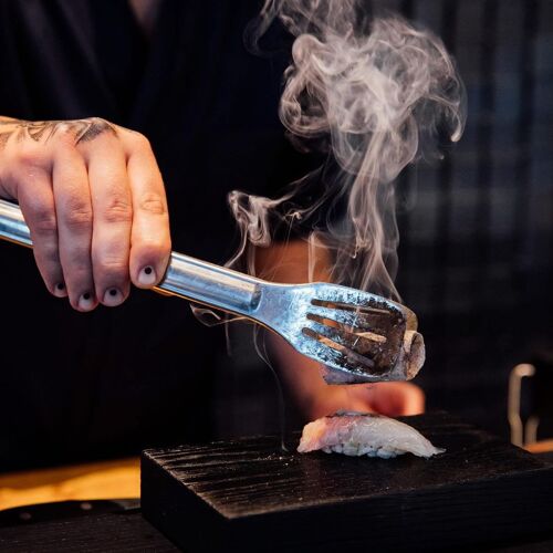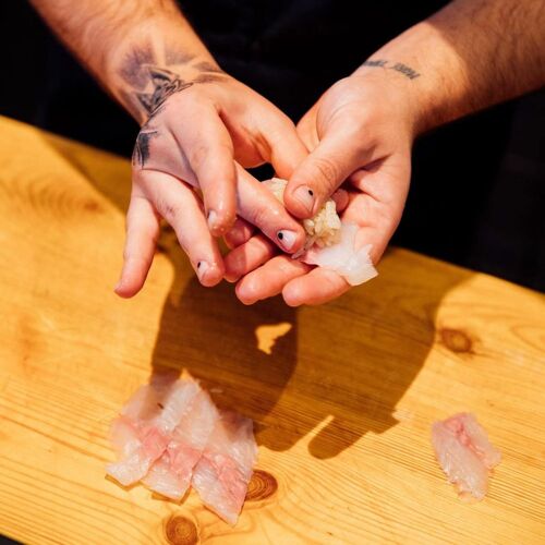 This restaurant, just a stone's throw from the marina and the Fomentín dock, boasts a young atmosphere and has a good sushi bar (for eight diners), although it also has a few tables. The two chefs in charge, Álvaro Gragera and Carlos Fraguas, propose a cuisine with Japanese roots based on the excellent products of the Bay of Biscay and Mediterranean recipes, through a small menu of bite-size nibbles (here the nigiris stand out for their technique, size and flavour) and an Omakase menu designed for sharing. They age the fish themselves!