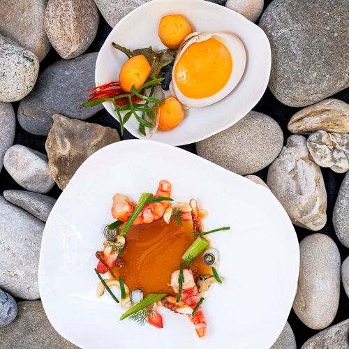 Lovée dans l’anse Corton, une crique naturelle et sauvage face au Cap Canaille, La Villa Madie, belle bâtisse contemporaine, occupe avec sa terrasse un site de rêve au-dessus des flots bleus de la Méditerranée. Normand devenu amoureux transi de la Provence, Dimitri Droisneau en tire toute son inspiration. De plat en plat, celle-ci court, légère, subtile, savoureuse, fraîche et aromatique, percutante quand il le faut, toujours surprenante et renouvelée. Toute la magie du Sud – ses produits marins aussi bien que terrestres – est apprivoisée au sommet dans cette cuisine. Ainsi en est-il d’un très grand plat comme la crevette carabineros et sa tartelette aux fruits rouges, où l'association iodée et saline du crustacé avec les fruits relève de l’harmonie céleste. Côté vin, un sommelier charismatique rivalise de propositions intelligentes.