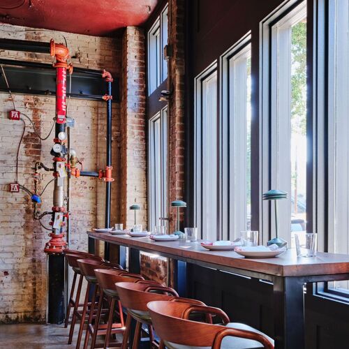This rambunctious pizzeria in Mercantile on Morris is a stylish spot built out of hard, warehouse floors and exposed brick. In lieu of traditional preparations, the kitchen takes a maximalist approach to toppings. Pesto, mortadella and pistachios or chorizo with romesco and chopped Castelvetrano olives arrive on a fine sourdough crust that’s been turned and crisped in a hot electric oven. Though the pies are serious and sizeable, meatballs are also a must-order for the table, as are desserts. Think pistachio tiramisu or a nostalgic ice cream bar dipped in chocolate. A fun selection of natural wines rounds out the experience.