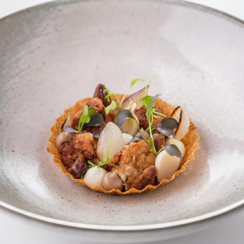 Olivier de Vinck de Winnezeele is een selfmade man. Wat ooit begon als een baantje om zijn studies economie te betalen, werd snel een passie voor het koken. Hij ging voornamelijk in de leer bij grote Spaanse huizen en begon samen met gastvrouw Inge in 1998 met Kommilfoo. Het restaurant is een serene plek die elegant en licht is. Een vaste waarde op het Zuid om topproducten te degusteren.