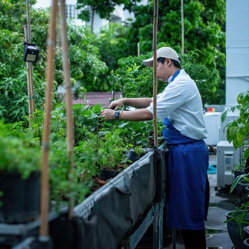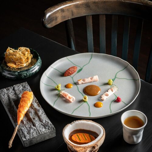 With high ceilings and an interior adorned with Sino-Portuguese-inspired colours, GOAT plays with design just as it gives the food a unique twist. Elements of Thai, Chinese and Western cuisines are cleverly brought together in a Thai seasonal concept. It's a showcase of the chef's latest inspirations, using herbs grown onsite and ingredients sourced from all over Thailand. The team also crafts and ferments soft drinks that pair perfectly with each course.