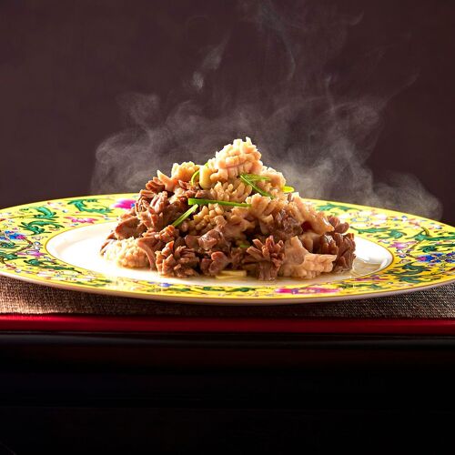 Via the grand entrance with a retro vibe, diners are escorted into a lofty dining room on level 2. Painstakingly crafted Beijing classics define the extensive menu, much of which dates back to the Qing Dynasty. The crispy duo blanched in oil manifests expert judgment of heat – pork tripe and chicken gizzards are both perfectly cooked. Thinly sliced smoked pork head meat is buttery and smoky. Round off with artisan desserts, like rose puff pastry or split pea cake.