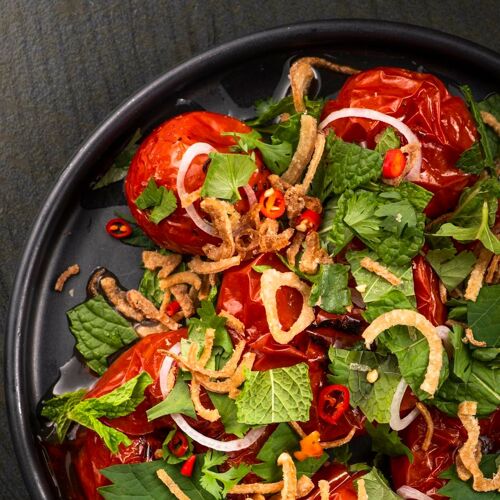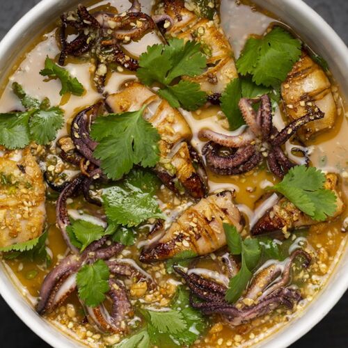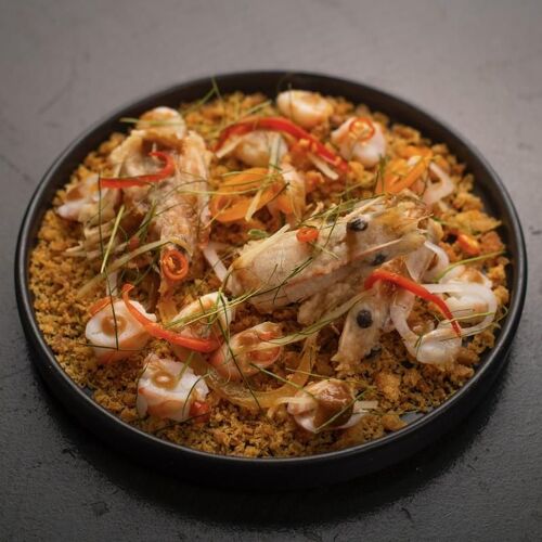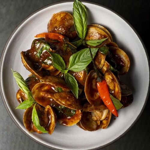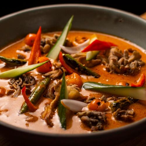 The menu draws on tradition, but it’s a far cry from run-of-the-mill, with creative interpretations of classics as well as original offerings. A fragrant steamed curry mousse (hor mok), studded with tender mushrooms and served with crispy puffed rice cakes, is a tantalizing starter, and even a familiar dish like green curry is made memorable with slow-cooked rabbit sourced from a local farm. Expect bold, unapologetic flavors—certain dishes feature spice levels not for the faint of heart.