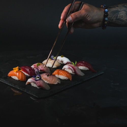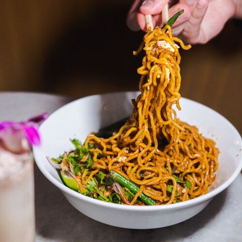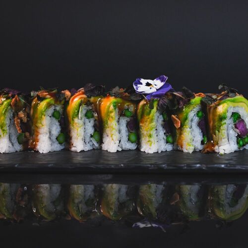 The fresh-spirited menu brims with shareable plates such as blistered shishito peppers and crispy chicken karaage. Entrées include duck breast with golden tomato confit, miso-glazed black cod or even Wagyu grilled tableside on a yakitori. The sashimi is straight-up sublime, but it’s the envelope-pushing items that make the most impact. Contemporary maki are a hit among the hungry hordes, and include the Tokyo Gangster, with shrimp and beef in a spicy black garlic sauce.