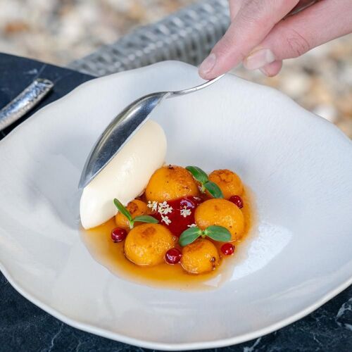 The name of the restaurant means "blackthorn" – a thorny shrub or tree commonly found in the hedgerows of France. Its fruit (sloes) can be turned into sloe gin. Formerly a school dating back to 1866, the premises are tastefully decorated throughout: exposed ceiling beams, large windows giving onto a tree-lined terrace, designer lighting and works of art. The chef cooks up a seasonal bistronomy menu that celebrates local produce and artisans, at affordable prices.