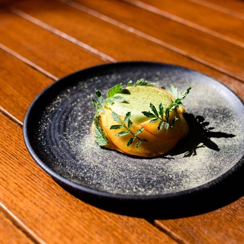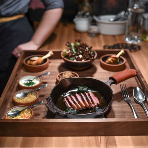 The Dabney exudes charming, contemporary farmhouse vibes with its exposed brick, light walls, and dark wood, and the look is completed by a slickly arranged open kitchen complete with a wood-fired hearth. Chef/owner Jeremiah Langhorne serves up the flavors of the Mid-Atlantic with a hint of a Southern accent and the tasting menu is a deeper, more committed expression of the team's talents. Begin with bite-sized snacks including their pie crust tart with pickled blueberries, granola crumble, and cheese fondue or their Madeira compressed melon. Then, hearth-roasted vegetables are served over a bed of farro salad with whipped ricotta, herbs from their rooftop garden, and finished with a pour of a basil sauce. American wagyu cap grilled over coals is accompanied by eggplant prepared three ways for a perfectly satisfying main dish.