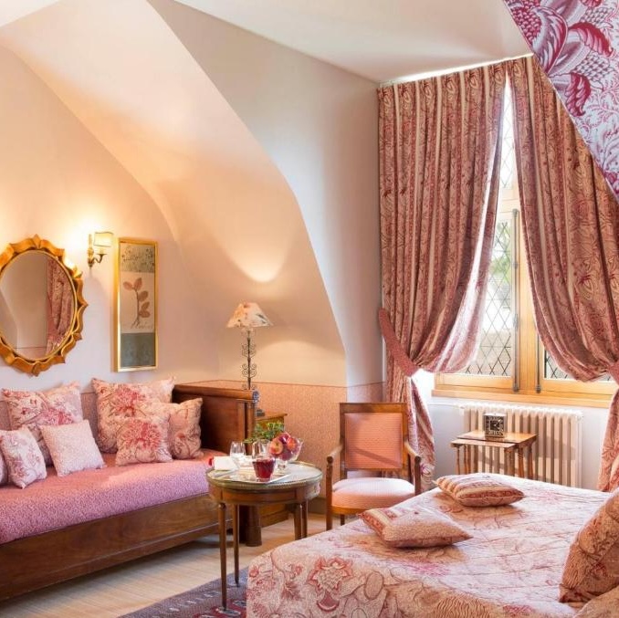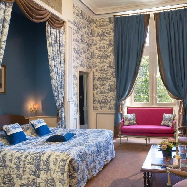 The 16th century Château de Noizay sits amongst a storied 24-hectare estate filled with manicured French gardens, woodland and vineyards. The 17 classically dressed rooms nod to the castle’s rich history with a mix of Toile de Jouy wallpapers, four poster beds, plush fabrics and antique furnishings, and are spread across two buildings, the Chateau and the Clock Pavilion, where ground floor rooms come with access to a small private garden. The restaurant is open for breakfast, lunch and dinner and serves seasonal, local cuisine, and other facilities include a heated outdoor swimming pool, a tennis court, and the option of booking in-room massage treatments.