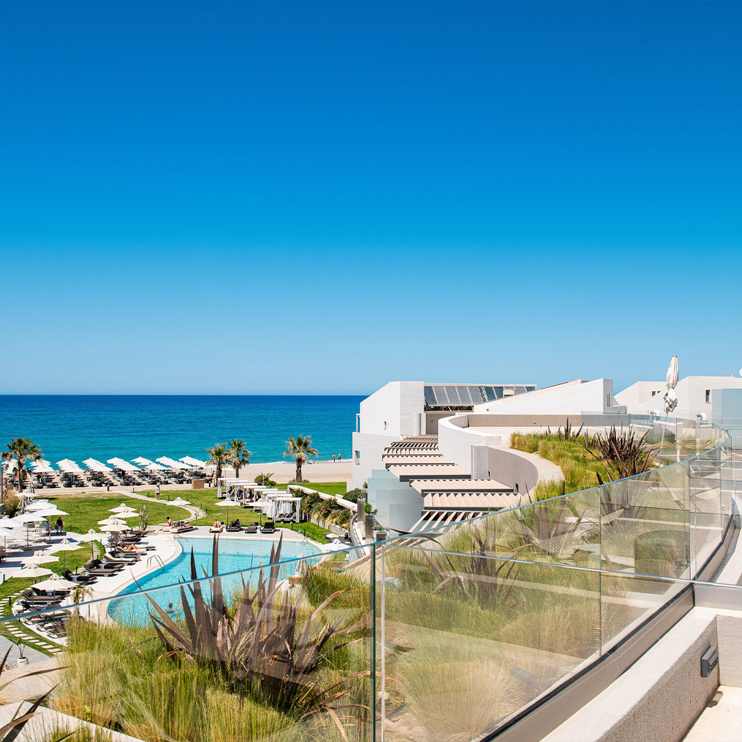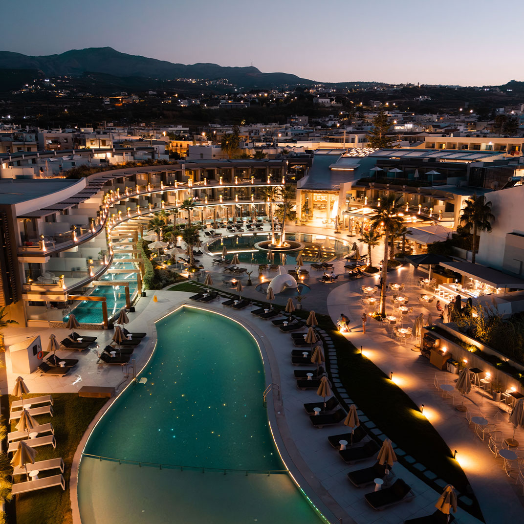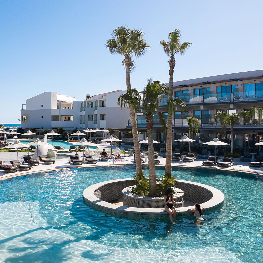 With 118 rooms and suites, Nautilux is a proper resort, and offers a wide range of accommodations, from standard rooms, which are substantial enough, to expansive suites and even two-level Maisonettes, which come with hot tubs and direct sea views. There’s a well-equipped spa and fitness center which is no less impressively modern in its style, and the hotel’s beach club is augmented by a pair of picturesque outdoor swimming pools. And while the town has its share of restaurants and nightspots, Nautilux gives guests plenty of reasons to stay in, from the daytime pool bar and the main Spiral Bar to Ulivo, the hotel’s modern Greek eatery.