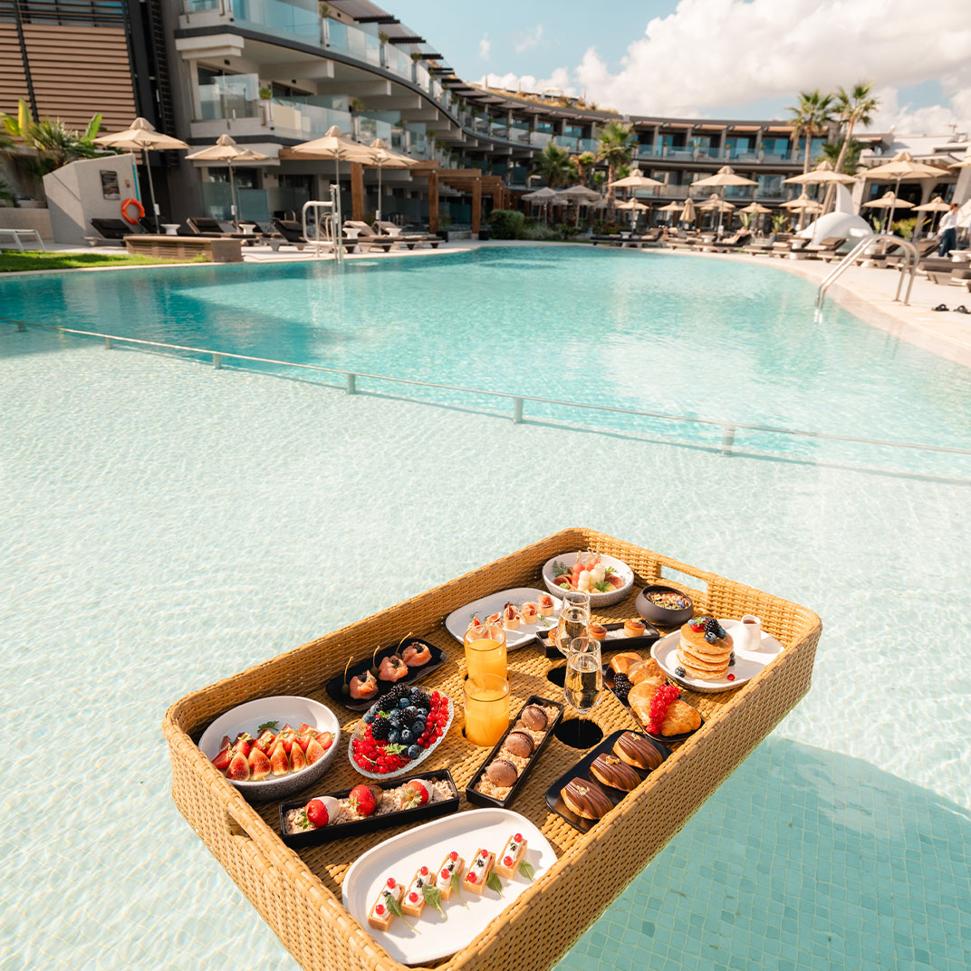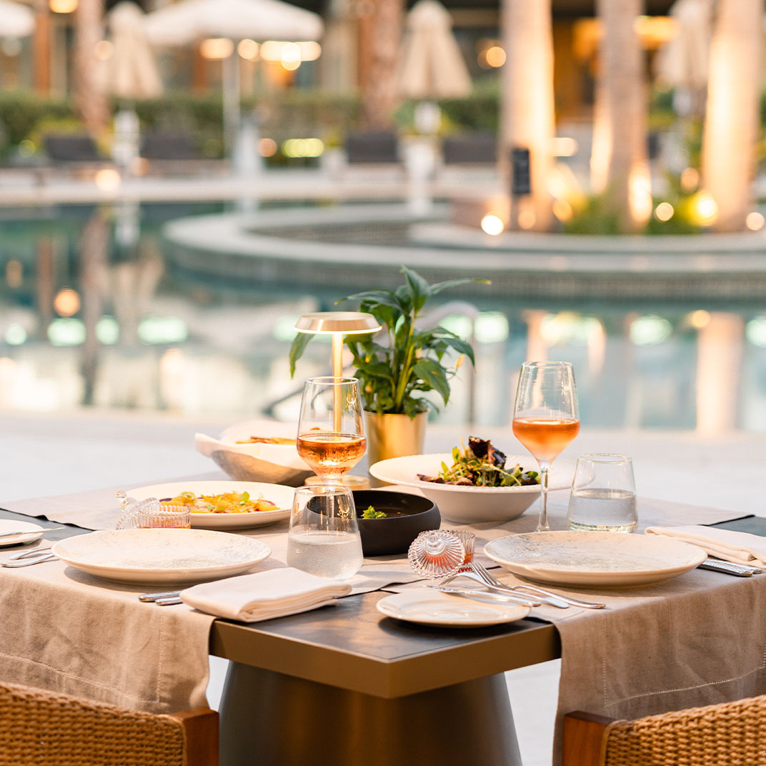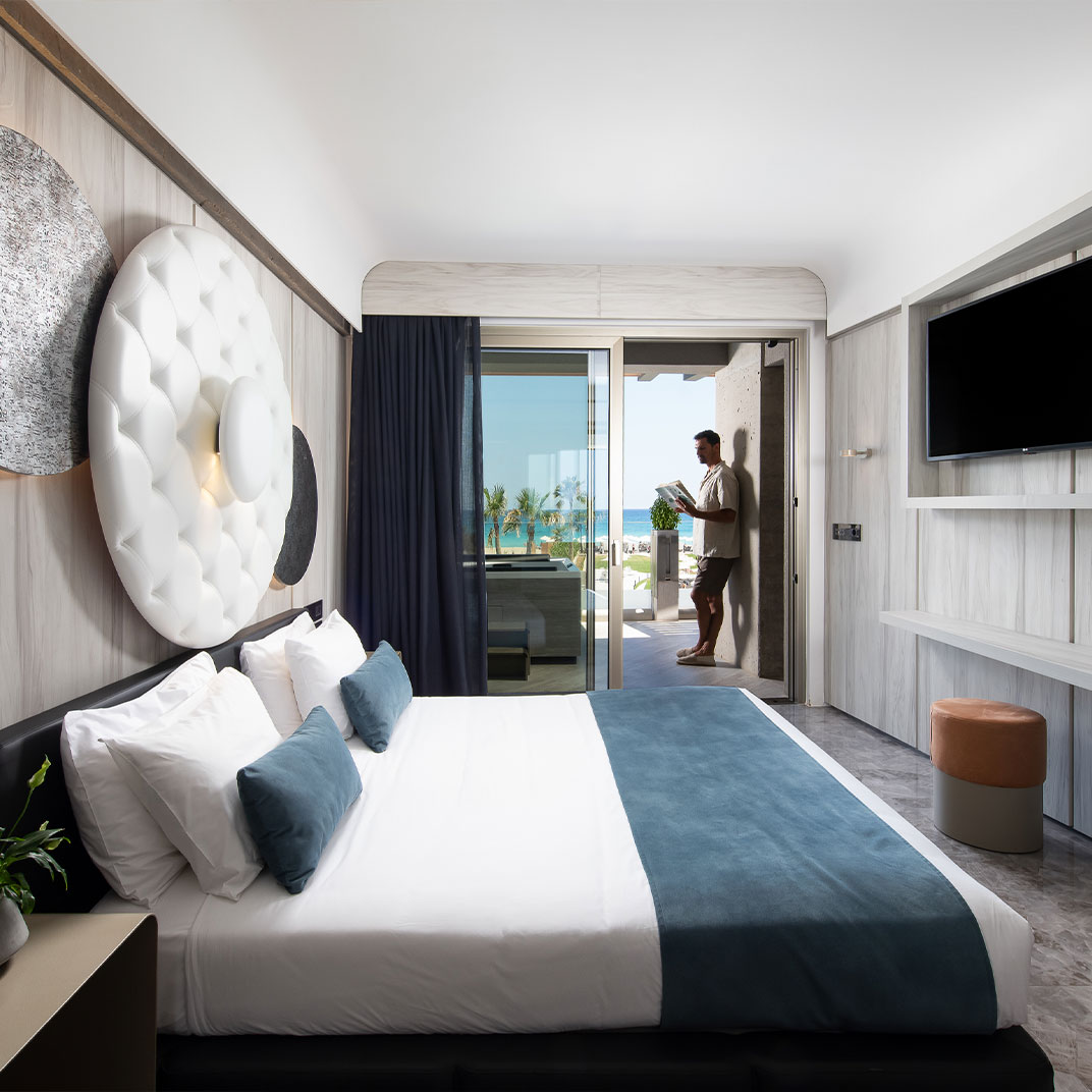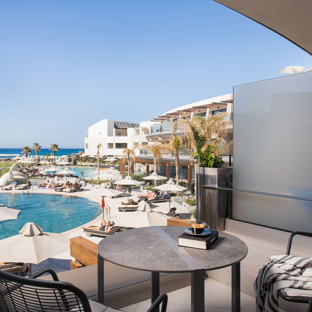 With 118 rooms and suites, Nautilux is a proper resort, and offers a wide range of accommodations, from standard rooms, which are substantial enough, to expansive suites and even two-level Maisonettes, which come with hot tubs and direct sea views. There’s a well-equipped spa and fitness center which is no less impressively modern in its style, and the hotel’s beach club is augmented by a pair of picturesque outdoor swimming pools. And while the town has its share of restaurants and nightspots, Nautilux gives guests plenty of reasons to stay in, from the daytime pool bar and the main Spiral Bar to Ulivo, the hotel’s modern Greek eatery.