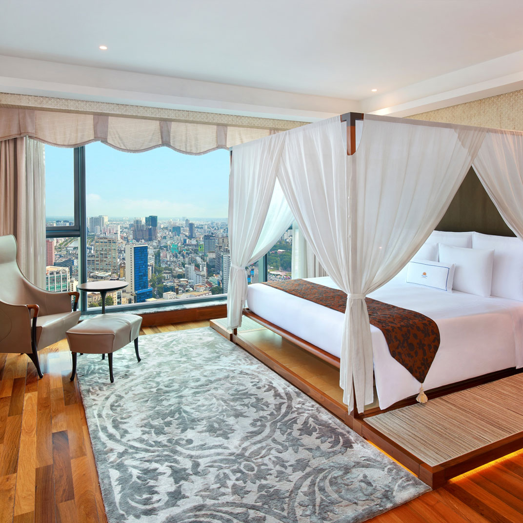 The Reverie Saigon proudly calls itself the most spectacularly extravagant hotel in Vietnam, and if anything they’re not giving themselves quite enough credit. A more opulent hotel anywhere would be big news; in Ho Chi Minh City it stands alone, an exemplar of ultra-luxury set atop the 40-story Saigon Times Square skyscraper.