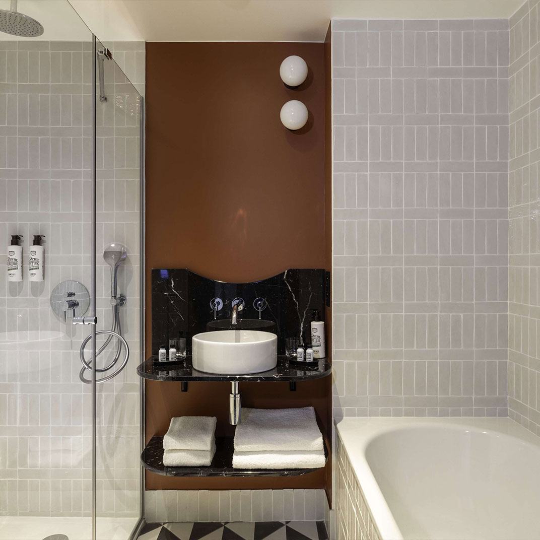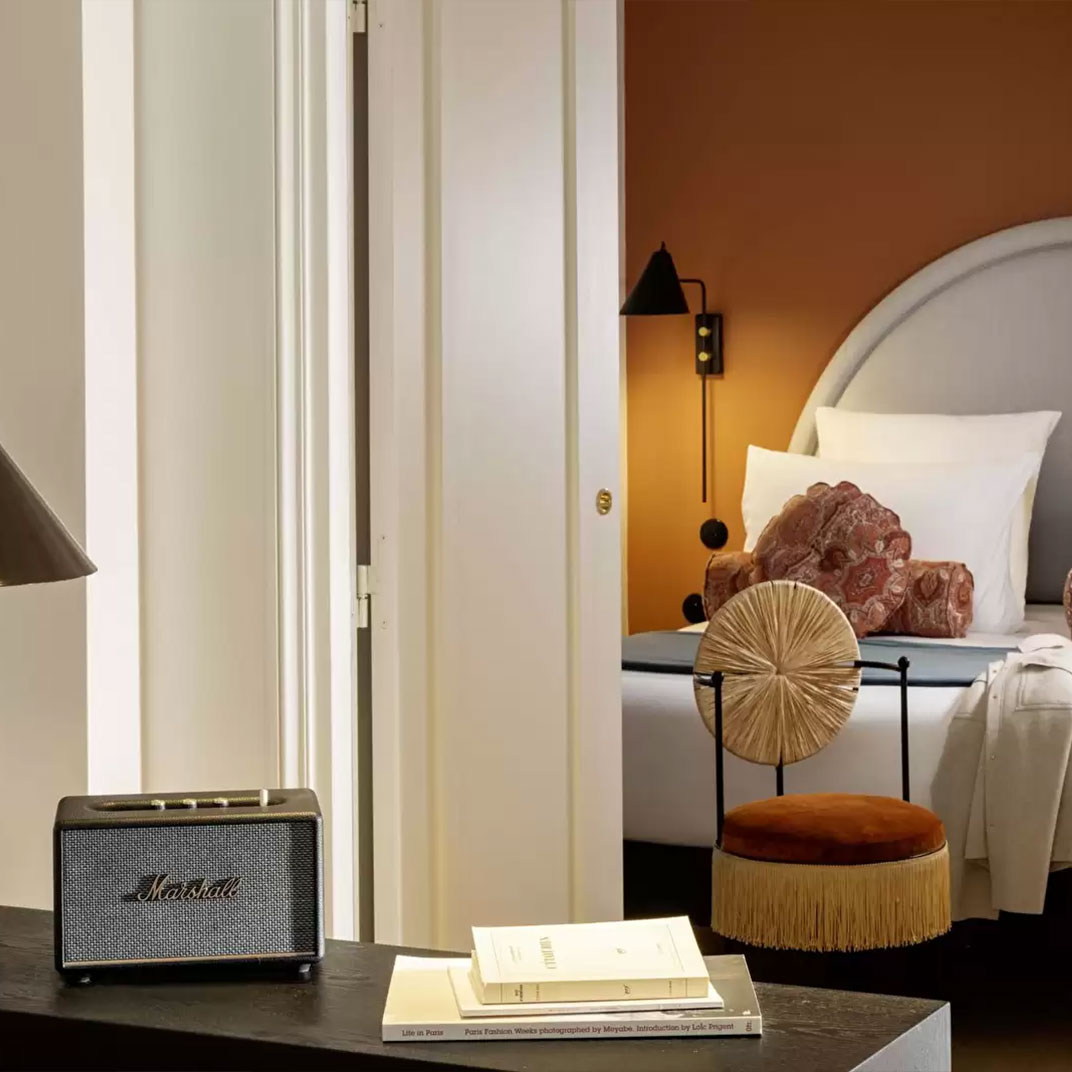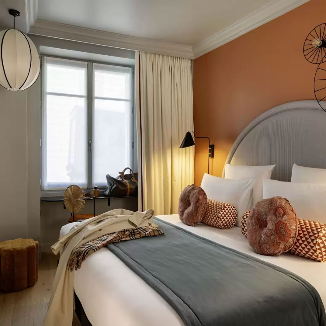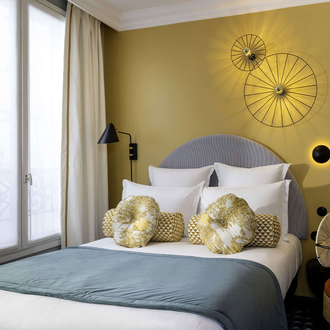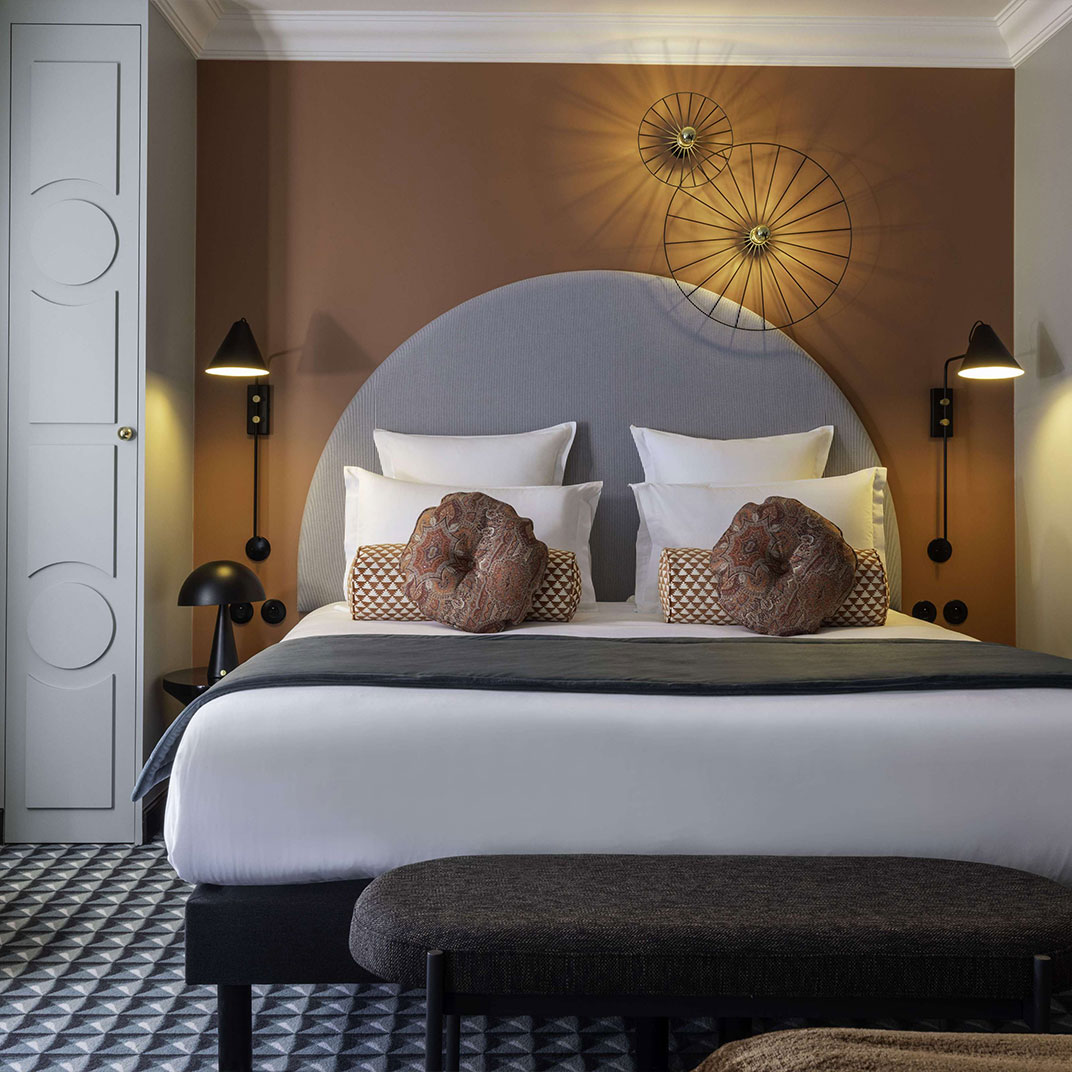 At the northern edge of the Marais, between the Place de la République and the Cirque d’Hiver Bouglione, lies Le Clark Hôtel, a charming little boutique hotel named for Edith Clark, the 20th-century parachutist who famously landed a jump from the roof of the circus. Life inside the hotel is a little more sedate, in a good way — its rooms, though circus-inspired, are elegant and quietly playful. In addition to the fine location, guests benefit from a small spa featuring a hammam, a sauna, and a gym.
