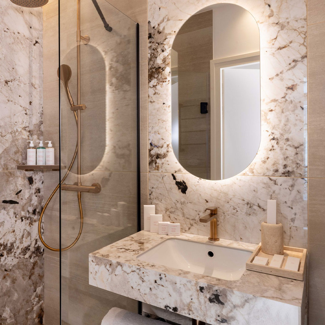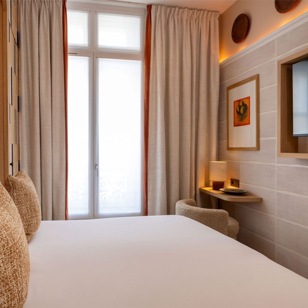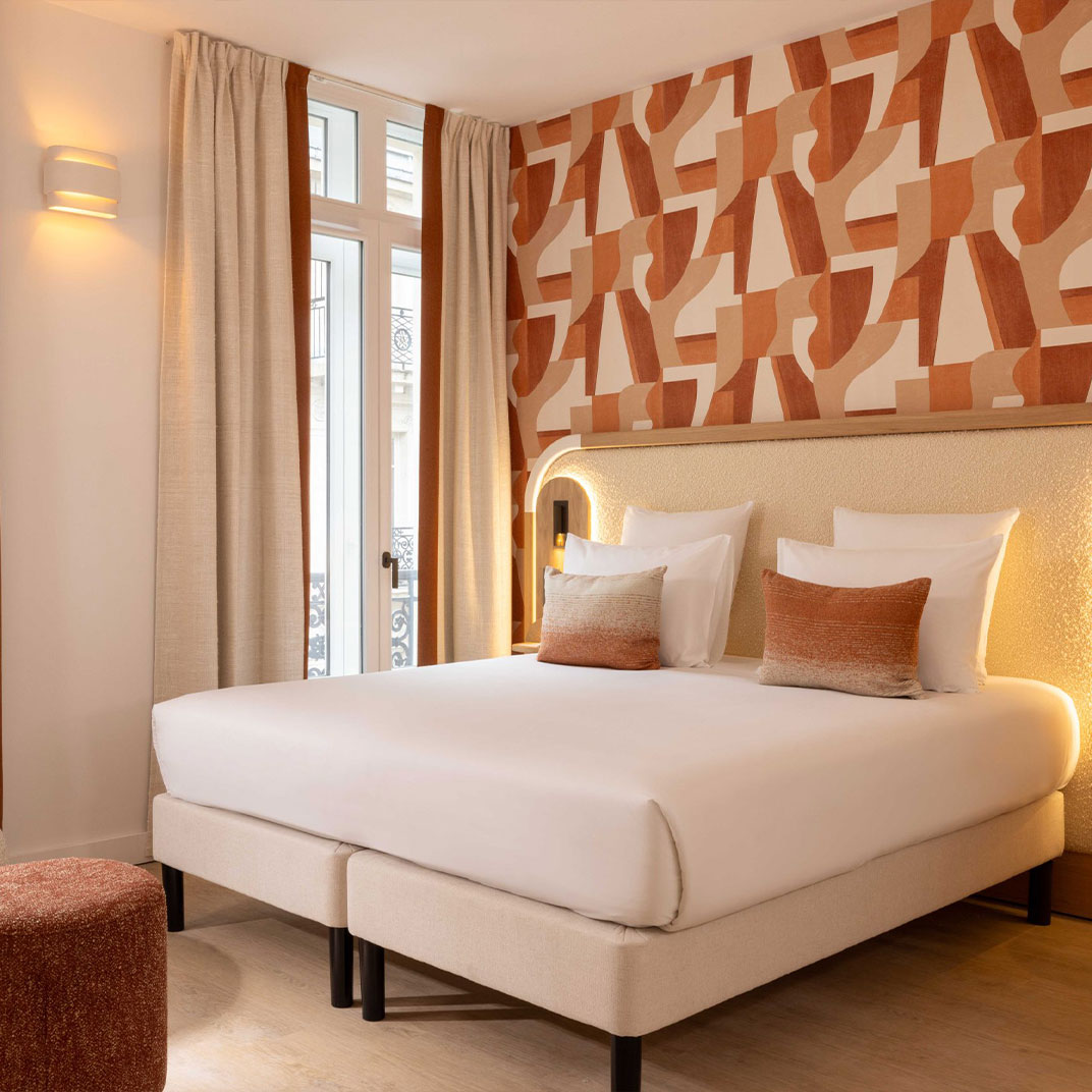 Madame Drouot Hotel & Spa is splendidly positioned in the heart of the 9th, close to the Opéra Garnier and the Boulevard Haussmann, and practically next door to the famous Drouot auction hall. It’s from the latter that Madame Drouot takes its aesthetic inspiration — here designer Stéphanie Coutas has created an eclectic look that jumps effortlessly between styles and eras. The apartment-like rooms and suites are modern and richly varied, and the spa’s hammam and sauna lie beneath the cellar’s vaulted ceiling.