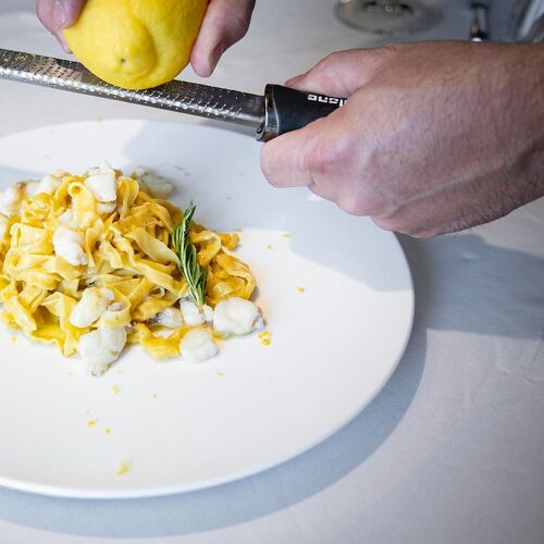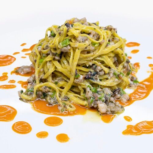 A classic-style dining room adorned with mirrors and silverware acts as the backdrop for fish and seafood dishes at this restaurant. The raw fish is particularly excellent, as are the mupa (a little-known fish that lives in the deep waters of the Mediterranean), prawns (in season) and home-made primi served with delicious sauces, such as the chicken plin with brown gravy. For special occasions, we recommend the table to the rear of the room near the arte povera-style dresser. Cheerful, friendly service adds to the appeal.