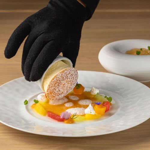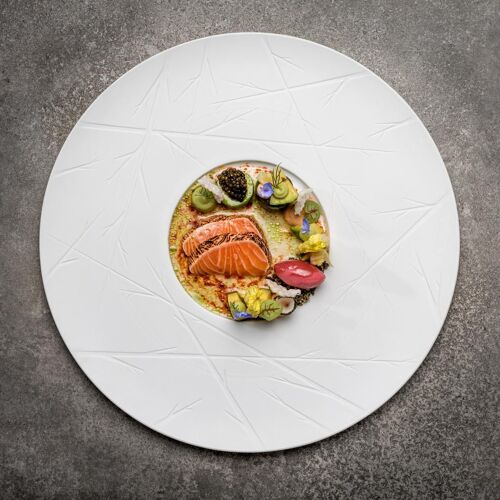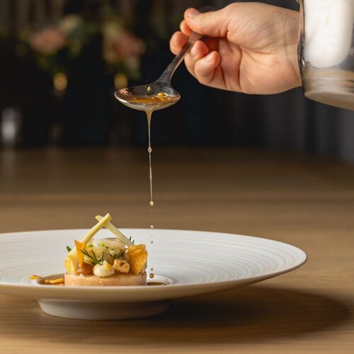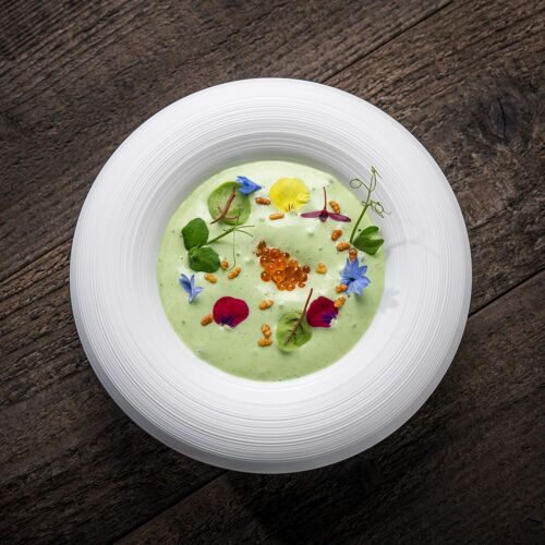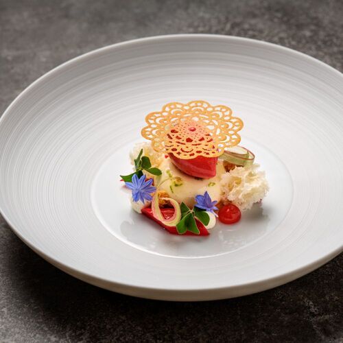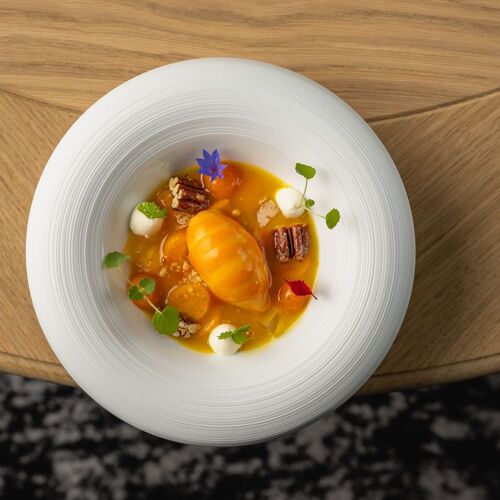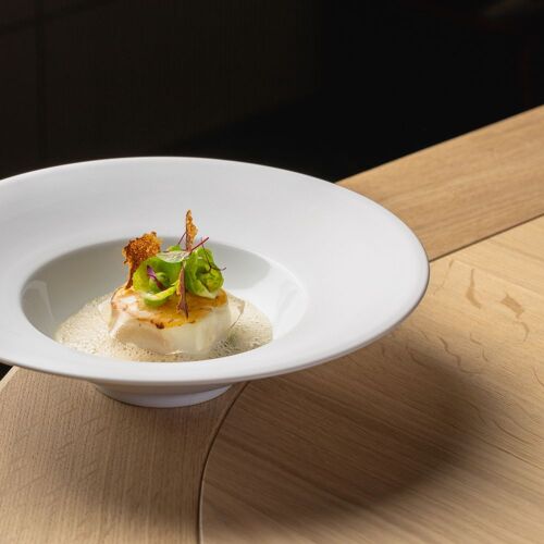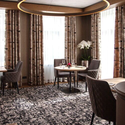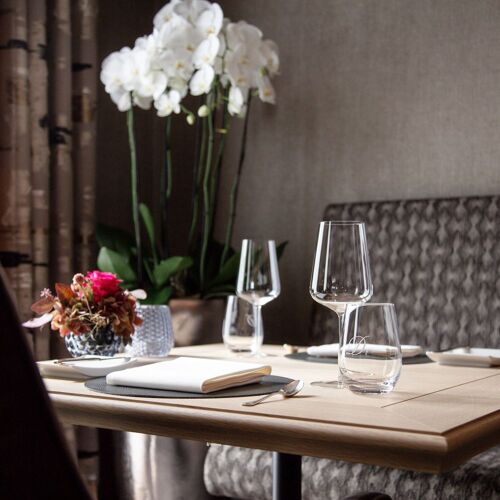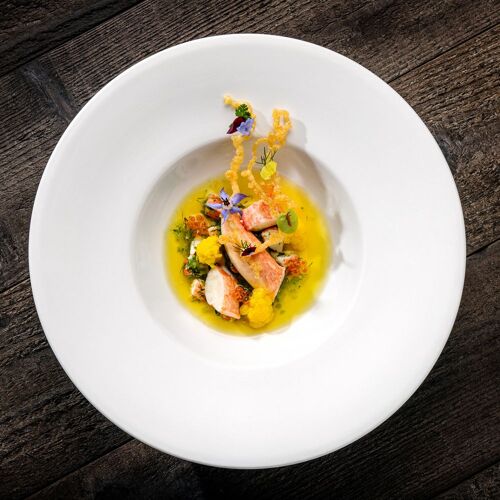 The spa hotel that houses this fine dining restaurant was originally a manor house that dates back to 1880 and has been in the Deimann family since 1917. The single set menu is bursting with bold flavours and demonstrates meticulous craftsmanship. Head chef Felix Weber champions a modern style of cooking and insists on the finest ingredients. The succulent turbot is grilled and then baked in the oven until slightly translucent – with its fine seasoning and wonderfully firm bite, it works beautifully with the delicate, nutty cashew cream, aromatic black salsify puree, cauliflower salad and confit kombu seaweed. Razor-thin slices of Buddha's hand and a thick, intensely flavoursome beurre blanc provide the finishing touches. Service comes courtesy of friendly and professional waitstaff including harmonious wine recommendations. In the chic, upscale interior, the open kitchen is the centrepiece – being close to the action, diners can gain many a fascinating insight.