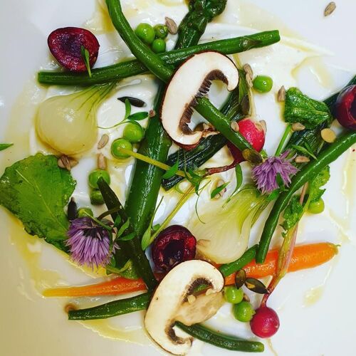 Chef Fabrice Rodot is a food lover, and he proves it with his dishes, which feature local and seasonal ingredients. He has a perfect grasp of the classics, and this cosy restaurant with rustic touches is a lovely setting in which to eat: cauliflower in a brioche crust, mousseline cream; organic veal, peas and carrots, sauce Périgueux-style jus; crêpes Suzette flambéed on a pedestal table. Not forgetting the excellent house-made bread! In fine weather, head for a table by the fountain on the terrace.