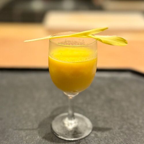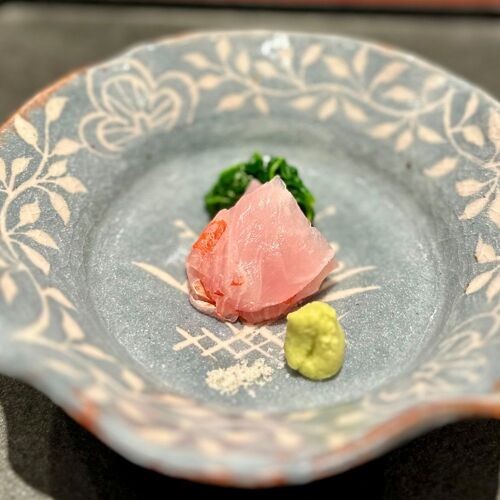 The owner-chef loves the heating power of bincho charcoal from the Kishu region. Unsurprisingly, his omakase set menu showcases the appeal of charcoal grilling. Decoratively arranged sashimi are scorched; the coating of fried foods is broiled to wreathe them in fragrant smoke. Char-grilled wagyu beef borrows an idea or two from sukiyaki; for a one-of-a-kind taste sensation, dunk it in egg yolk and a dipping sauce made from sukiyaki stock. The restaurant’s name means ‘a flash of brilliance’—an apt summation of the imagination of the owner-chef.