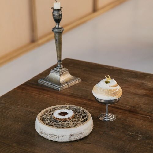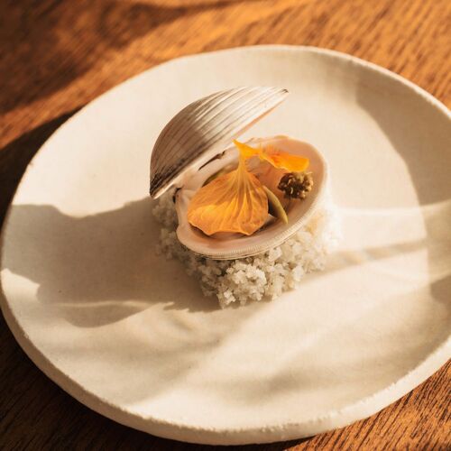 This greenhouse with timber arches devoted to the goddess Freia is perched on top of a contemporary building. It is the perfect place to grow a garden of aromatic herbs and berries and to admire the panoramic view of Nantes. After the success of Vacarme, Sarah Mainguy crafts poetic and creative cuisine, mainly plant based and scattered with Scandinavian and Asian touches. Each dish is a treasure trove of brainwaves and delicious sauces – cases in point being the white asparagus with a vegetable seaweed XO sauce, or periwinkles with crisp green peas, topped with a glazed gwell snow.