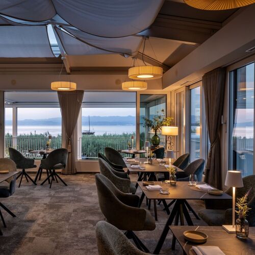 The first thing that strikes you is undoubtedly the view: your gaze is lost over the beautiful, peaceful Gulf of Quarnero, framed by a small private olive grove from which an excellent extra virgin olive oil is produced, served with delicious homemade rustic bread. The service is professional, and the wine list, while not extensive, is well-curated, with labels from all over Croatia. To start, we recommend a Tomac Blanc de Noirs, a fresh and characterful sparkling wine. The cuisine is creative and seasonal, and choosing between the 4- or 7-course menu will guide you through the world of Marin, a young chef who offers a technical cuisine with a gourmet touch.
