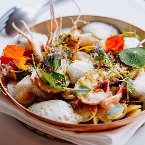 This is the Tokyo outpost of Le Pristine of Belgium. Directing the kitchen is Sergio Herman, a standard-bearer in the world of Dutch cuisine. The restaurant introduces ‘New Italian’, which combines pure Italian flavours and the culinary traditions of Herman’s native region of Zeeland, in the Netherlands. The orecchiette is a true Le Pristine classic bearing Sergio Herman’s signature and is now available in Tokyo. The art and background music combine to help create a modern dining experience.