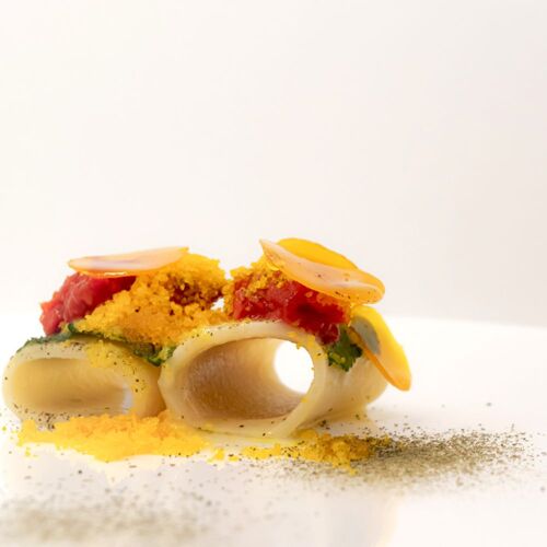 This intimate and romantic restaurant occupies an old 19C farmhouse situated in a tiny hamlet in the Cembra valley. In the softly-lit dining rooms, chef Mara Fronza serves just one tasting menu which changes every month (guests have the choice of the main menu or a shorter version if they prefer) and showcases Italian dishes with obvious regional influences, especially in the seasonal ingredients used, all prepared with a modern twist. The famous carbonara is reinterpreted with the addition of anchovies and Crusco peppers, while the dark chocolate dessert with cherries in rum and cardamom-infused cream is truly delicious. Highly recommended!