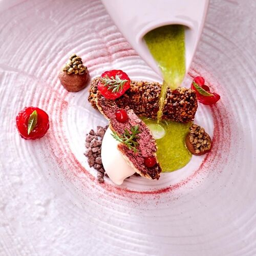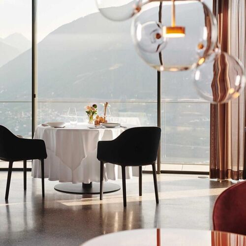 Breathtaking 180° views of the Val Venosta provide the theatrical setting for Gerhard Wieser’s culinary talents at this restaurant. The chef’s cuisine is as precise as a Swiss clock yet full of international influences, with ingredients transformed into small masterpieces thanks to impeccable techniques and an elegant flair. His most memorable creations include red prawn tail cooked over a wood fire and served glazed, on top of a pea mixture (served plain, with cream or with olive oil) flavoured with chorizo sauce. To complete your dining experience, talented and attentive sommelier Ivana is on hand to help with wine choices, guiding you through the region’s wines and creating a bespoke wine pairing that is perfect for you.