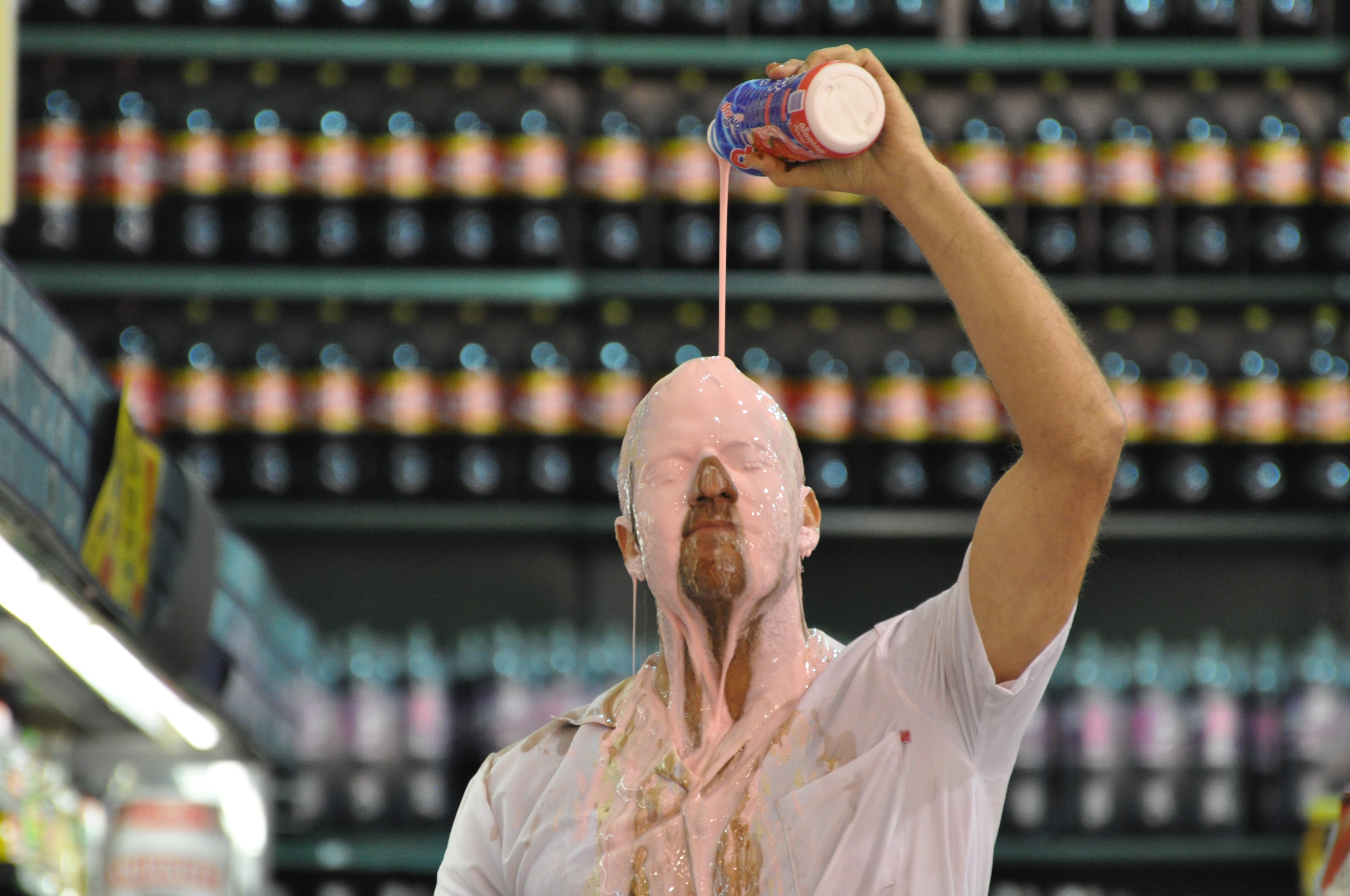 “Esta é uma síntese de tudo o que fazemos de errado com a comida. Antes a gente tinha que produzir e fazer a própria comida. Hoje você vai, compra e come, sem se dar conta do ritual de se alimentar ou do tipo de alimento que põe dentro do corpo. Eu usei meu próprio corpo como tela em branco, me pintando com toda essa junk food". Ele prossegue. “O Brasil é um dos países que mais desperdiça alimentos. Você vai à CEASA (Central Estadual de Abastecimento) e vê a quantidade de comida jogada fora que poderia ser servida para pessoas que passam fome. Tem muita gente com pouco e os poucos que têm muito comem demais”, acrescenta Srur.