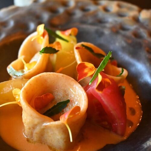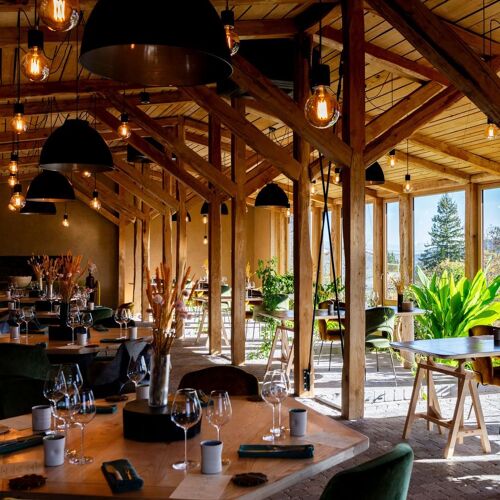 The view over the valley and the surrounding Ardèche hillsides, a beautiful timber structure, chestnut wood tables, an indoor aromatic herb garden and the etymology of the name bòria ("small Cévennes farm" in Ardèche dialect) - the stage is set! Assisted by a high-flying team whose wholehearted commitment to the house ethos is beyond doubt, chef Florian Descours pays tribute to his rural roots with fresh, local produce: beef from Privas, pork from Beaulieu, snails from the Eyrieux valley and trout from Labatie-d'Andaure). A treat from beginning to end, from the grilled baby gem lettuce and Villevocance pigeon with watermelon and sorel to the millefeuille of garden fruit and a delicate verbena-flavoured cream, without forgetting the fantastic cheese board. Hard to beat!