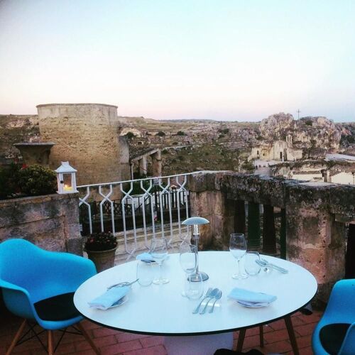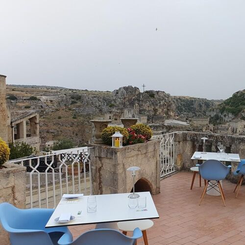 The three tasting menus (Contaminazioni, Dimora Ulmo and A mano libera) served at this restaurant housed in an old restored palazzo with a splendid summer terrace overlooking the Sassi feature a balance of modern cuisine and traditional local dishes. The dining room is equally attractive, while the interesting wine list includes labels from the region alongside a selection of wines from elsewhere in Italy and further afield.