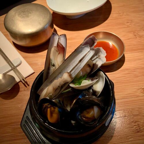 This urban Korean eatery on the doorstep of the Châtelain district never fails to deliver. The locals flock here at lunchtime to polish off a main course or take their time over a more leisurely meal with a glass of wine. Pajeon is one of its star dishes: a crisp pancake filled with meat or fish flanked by a sweet vinaigrette and a spicy chili sauce. This dish symbolises the delicate balance between sweet, sour and spicy notes achieved by the chef, further underscored by a playful melody of varied textures. The epitome of authentic Korean nosh!
