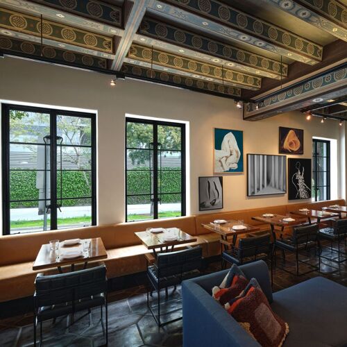 This airy stunner, which occupies a former church in the heart of Downtown, flaunts an impressive open ceiling allowing diners to stargaze—and that’s not even counting the occasional celebrity sighting. The boisterous atmosphere is beloved by the trendy patrons, who can be seen swapping small plates from perches at the two circular bars and eclectic sofa-stuffed lounge. On the global menu, creative dishes sit side-by-side with more traditional treats like John Dory in a leek fondue strewn with pan-seared gnocchi and mushrooms. Save room for clever desserts like their Meyer lemon tart with blueberry frozen yogurt or opt for another cocktail from the extensive list.
