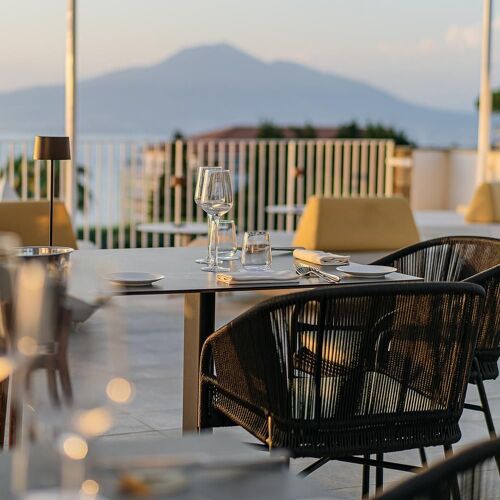 Housed within the modern Domo20 hotel, perched in a panoramic location overlooking the Bay of Naples, this restaurant serves simple Mediterranean cuisine with a contemporary twist. Authentic flavours are combined with modern touches, resulting in fresh and elegant dishes. In summer, meals are served on the delightful Terrazza Vesù, the third-floor roof-top terrace, where the views of one of the most iconic bays in the world are breathtaking. Here, suspended between sea and sky, guests can dine under the stars or enjoy a sunset cocktail, immersed in a truly elegant and relaxing ambience.