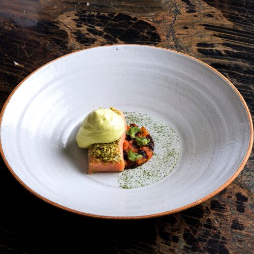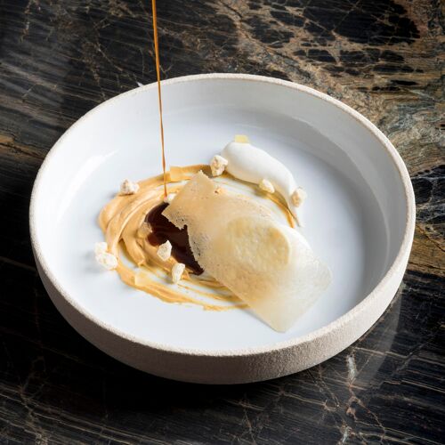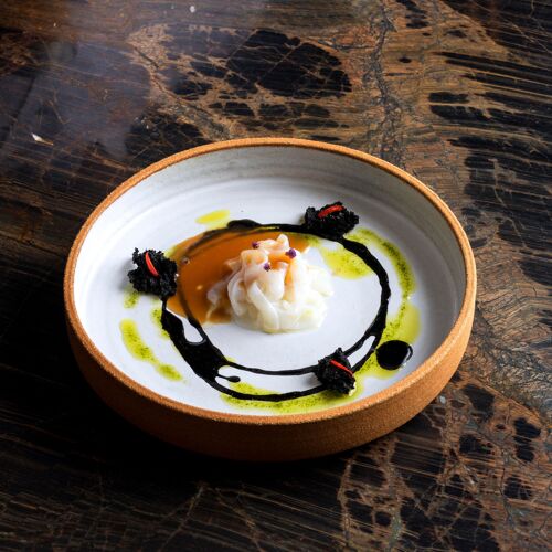 This enchanting restaurant has been designed to enhance the dining experience through different spaces that reflect the family roots and the culinary influences of chef Jordi Artal: the home-made vermouth and appetisers that welcome guests to the Faifó; the move from La Torre de l'Espanyol (Tarragona) to cosmopolitan Barcelona that is explained in the dining room; the Biblioteca Viva (Living Library) where they display jars of fermented products, garums, kombuchas... and, of course, the exclusive space set aside for the “chef's table” overlooking the kitchen. The cuisine here is this self-taught chef’s personal take on modern Catalan cuisine, which he bases around working with trusted small-scale producers and showcases ingredients with a strong Catalan DNA (“floreta” peas grown in the Maresme area, prawns from Palamós, onions from Figueres, pork from Sagàs etc). Everything revolves around two delicate tasting menus: Corto (Short) and Degustación (Tasting).