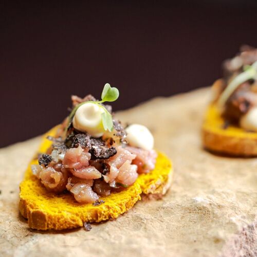 A homely restaurant occupying a restored 12C house that was once part of an attractive porticoed street in the centre of Morella. Inside, the classic-cum-contemporary dining room shares space with an unusual 13C well and a glass-fronted wine cellar in the basement. The cuisine here is centred around traditional Morella recipes which have been pleasantly updated both in terms of presentation and culinary technique and can be enjoyed via the à la carte and the Raíces (Roots) tasting menu, on which local producers and seasonal ingredients play a prominent role.