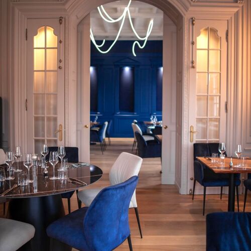 Chef Sébastien Renard (who appeared as a contestant on Top Chef) has taken over the sumptuous premises of his mentor, the great chef Marc Meurin. This red-brick mansion is truly magnificent, and its bar and elegant glass roof lend it undeniable flair. The young chef, who hails from the region, shows his firm commitment to local produce by showcasing local ingredients and championing their suppliers. He serves up a carte blanche menu that leaves no doubt as to his technical expertise: squid tagliatelle with apple, celery and ginger; monkfish tail with white asparagus and hay sabayon.