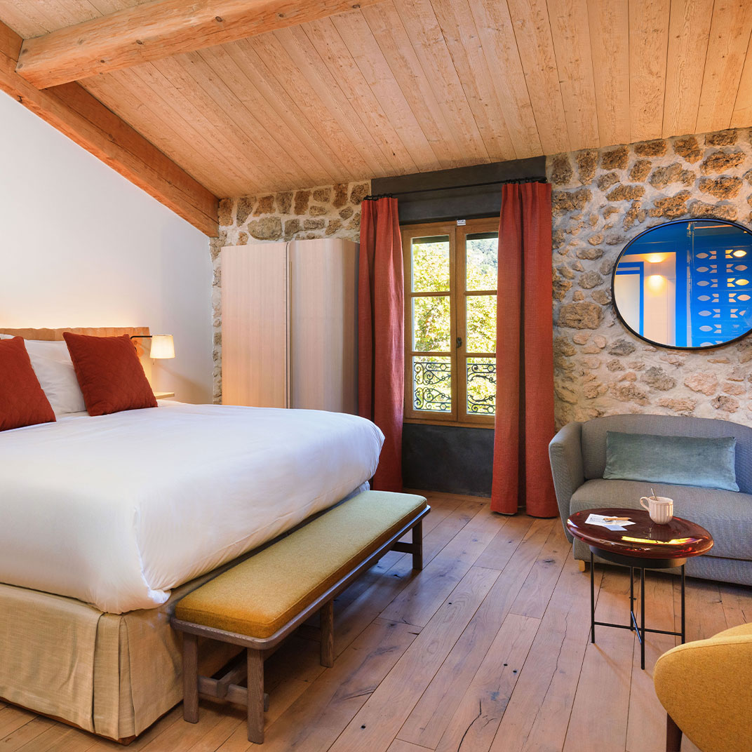 Today’s Lou Calen is luxurious, and as private as ever. Its 36 rooms and suites are divided between the main house and a hamlet-like set of outbuildings. All are architecturally distinct, and decorated in a style that combines Provençal tradition with modern and contemporary art and design. Meanwhile the Jardin Secret restaurant is joined by a more casual bistro as well as an on-site pastis-bar.