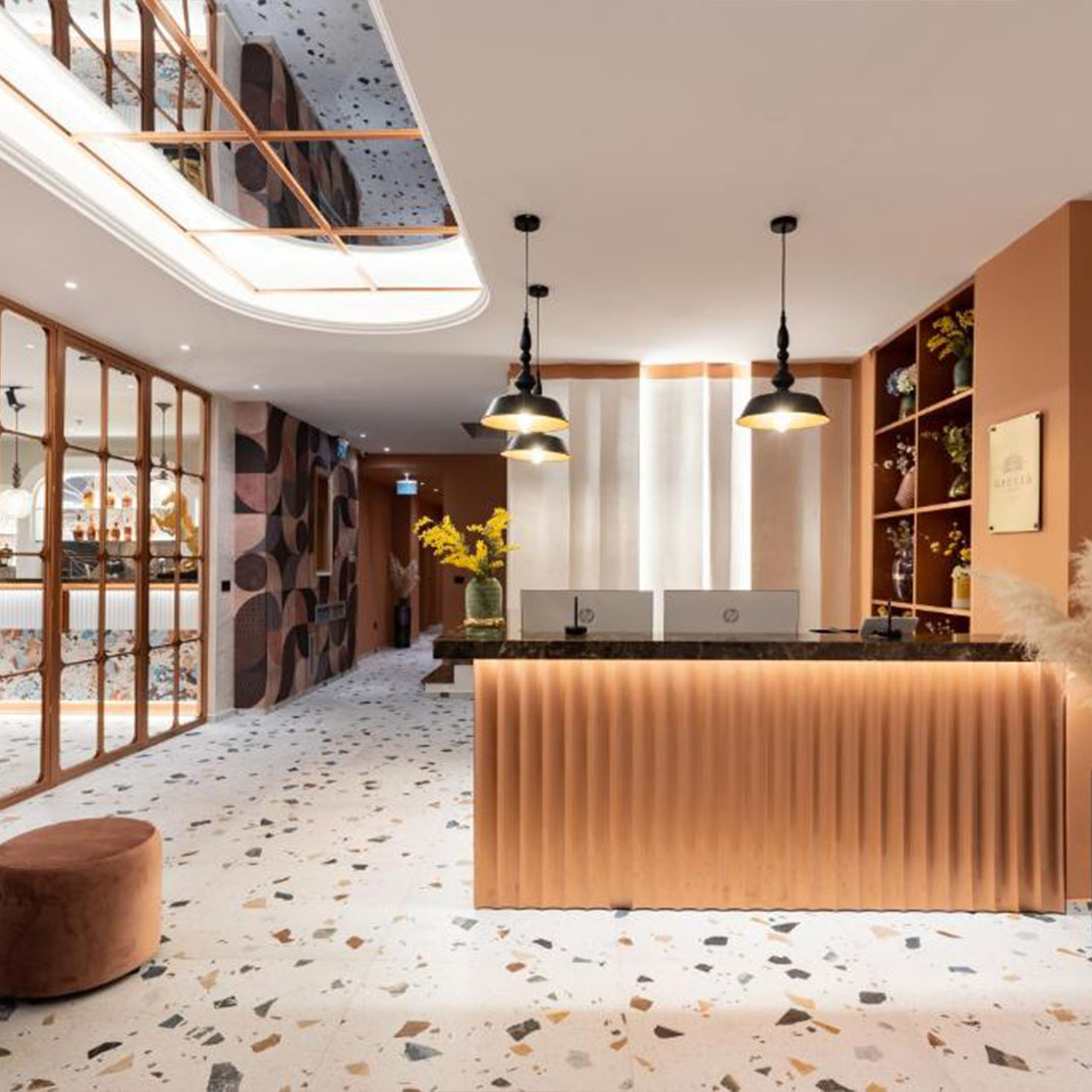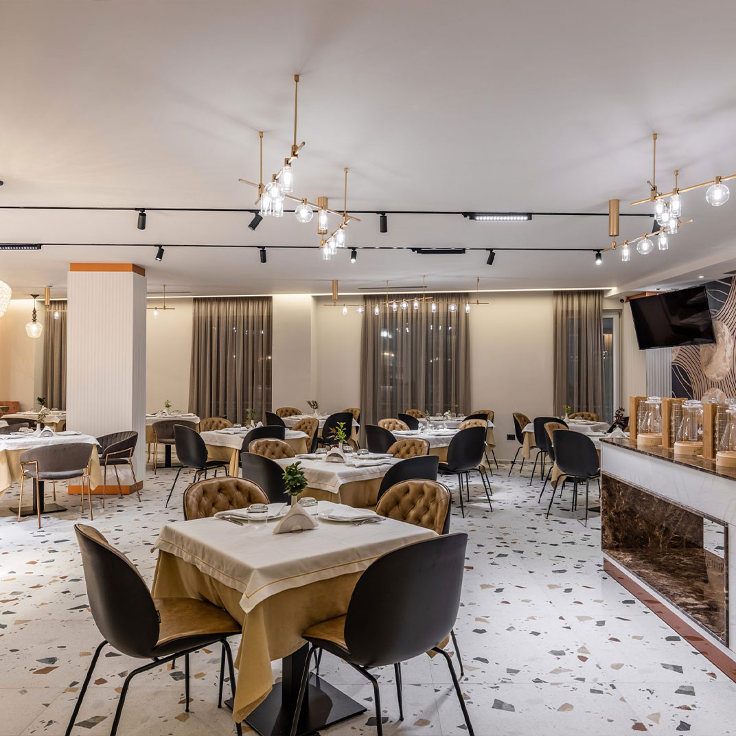 Giulia Albérgo Hotel ticks a lot of boxes for a city center bolthole. The elegant white façade hides a small collection of classic contemporary adults-only guest rooms, decorated in a mix of immaculate white, warm wood and mirrored walls, and all with views across the city. Facilities include a restaurant, bar and an attractive terrace, while the hotel’s excellent central location means the city sights are just a short walk away, including the port and historic Durrës amphitheater.