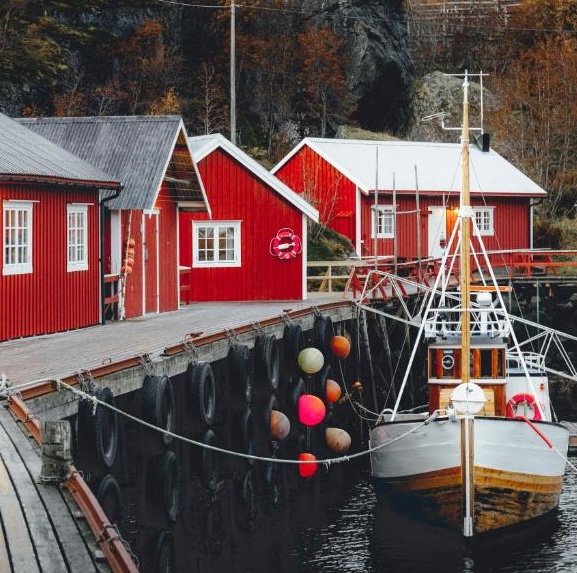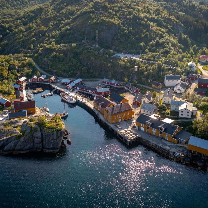 On the southern coast of the Lofoten Islands, Nusfjord is among Norway’s oldest fishing villages, its harbor lined with red stilted “rorbuer” that once sheltered cod fishermen. Today, many of the cabins are reimagined as guest lodgings, where original timbers sit alongside understated contemporary design. A handful remain unchanged since the 1890s, with no running water, for those who want to experience history in its raw form. Locals still live among them, keeping the village alive. The experience is both immersion and escape, a rare chance to inhabit Lofoten’s fishing past without losing sight of the present.