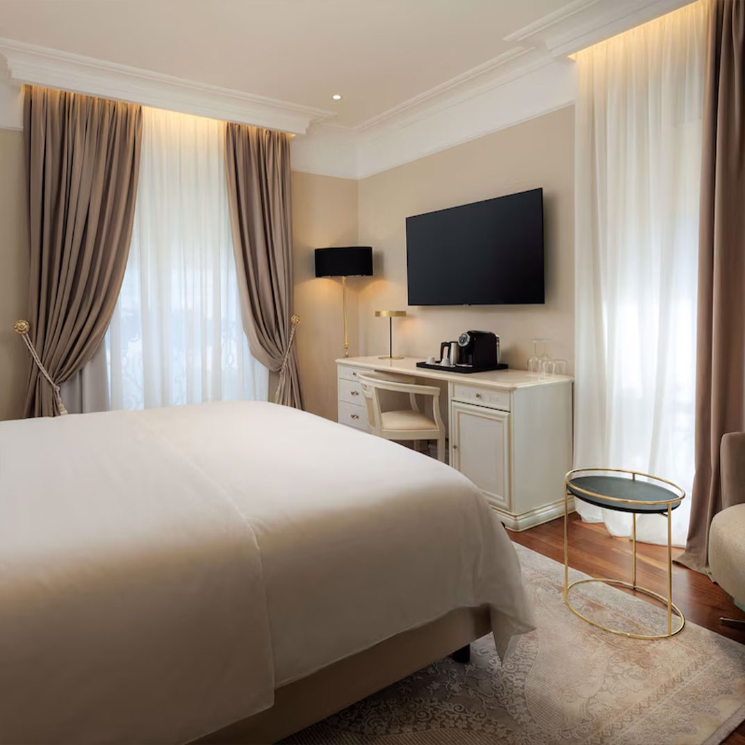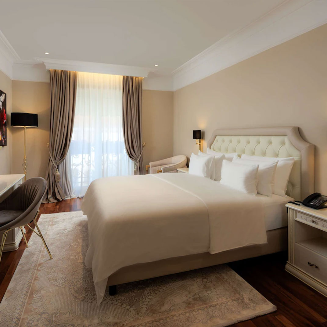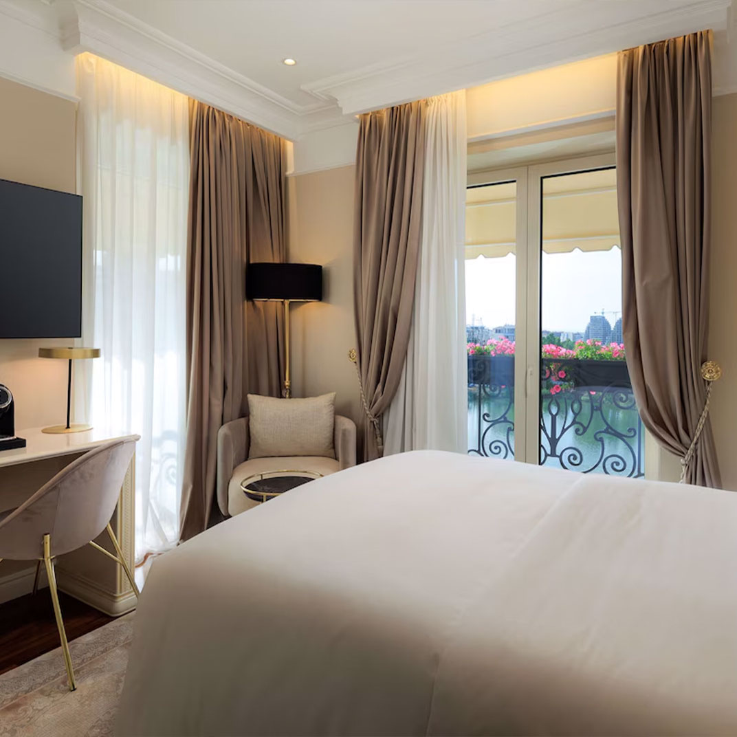 Looking out over Tirana’s Grand Park Lake, the Radisson Collection Morina offers a rare combination of city energy and resort calm. Rooms are dressed in understated whites and browns, their balconies framing views of water and hills.