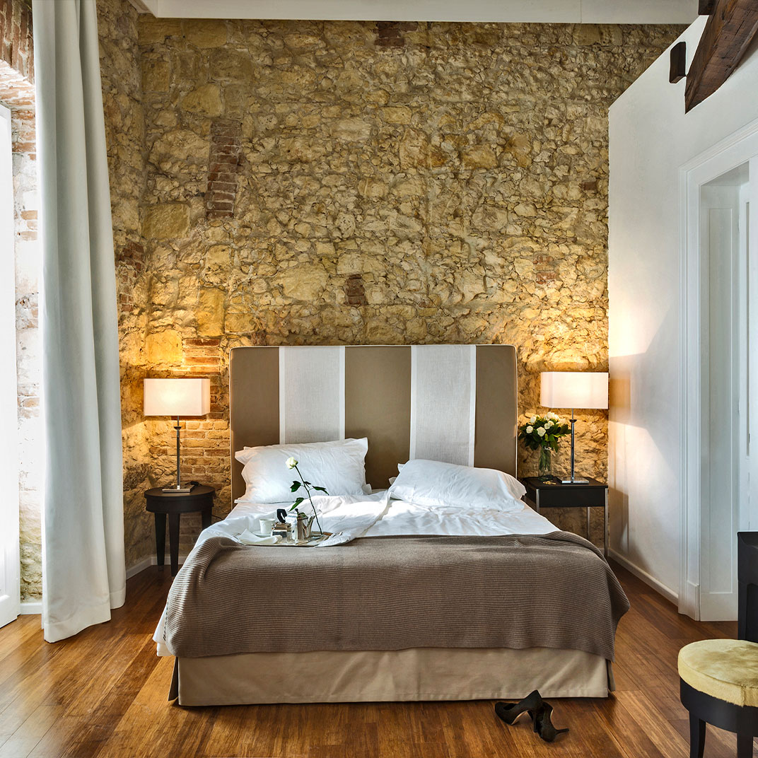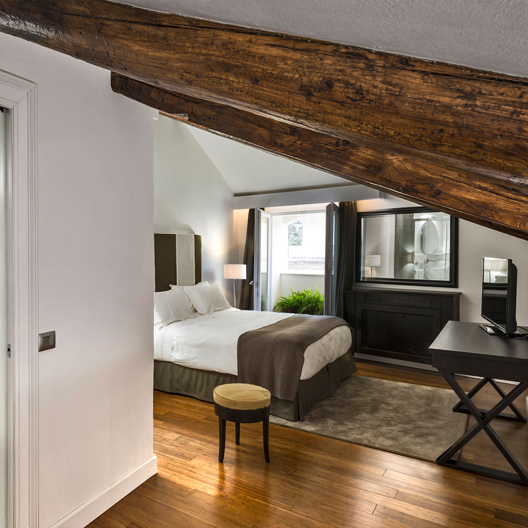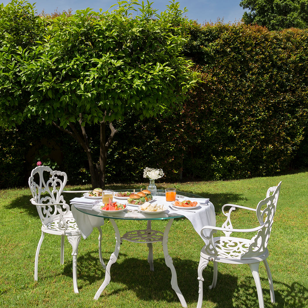 The villa itself has been beautifully preserved and attractively updated; as is typical in Italian boutique hotels, historical architecture and contemporary design go happily hand in hand. Rooms vary, as they often do in antique houses, from cozy double bedrooms to expansive suites, including one that stretches out across two levels. A heated jacuzzi adds to the garden’s appeal; the hotel’s kitchen serves breakfast and a light lunch, while the bar offers light bites in addition to cocktails and wine.