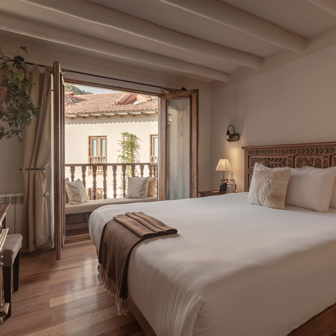 In the heart of Cusco’s San Blas district, Antigua Casona is a piece of living history. Built between 1750 and 1800, its thick adobe walls, hand-carved balconies, and red-tiled roofs have stood the test of time. A meticulous restoration in 2016, overseen by Peru’s Ministry of Culture, preserved its colonial charm while adding modern comforts. The courtyard, now a lively gathering space with fire pits and a cozy bar, still feels like the soul of the house, much as it did centuries ago.