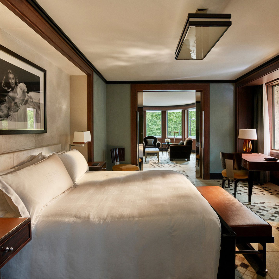 No entanto, é em suas acomodações que o 45 Park Lane encontra seu nicho. Os quartos e suítes são elegantes, requintados, mais do que um pouco Art Déco, apresentando obras de artes britânicas contemporâneas em destaque e vistas para o Hyde Park. Na cobertura, há espaço suficiente para um jantar entre amigos, tendo grande parte do centro de Londres como pano de fundo. De alguma forma, a opulência, ainda assim, nunca é excessiva, embora o estilo também não siga a linha casa de campo inglesa. Por fim, o êxito do 45 Park Lane é fazer com que o luxo fora do comum pareça perfeitamente direcionado.