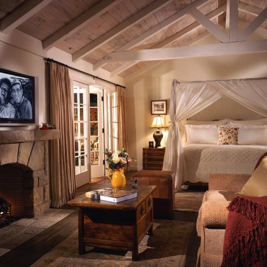 Rather than steaks and eggs, or whatever it was that Old West ranchers ate, guests at San Ysidro dine on California cuisine prepared largely from the gardens on premises. Post-meal you’ll retire to a room that’s big and comfortable, California-rustic in style, with a king bed, a stone fireplace and heated bathroom floors. The rooms are big and plush enough, but the suites and cottages, in addition to some extra space, add private hot tubs on outdoor patios.