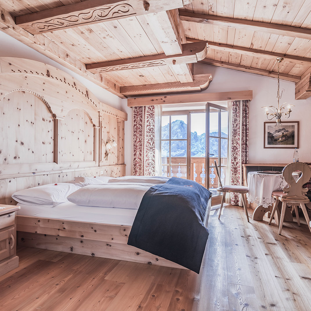 Even the cozy “Romantic” rooms feel more spacious than they are, thanks to the spectacular mountain views. The junior suites and suites, meanwhile, border on lavish, and benefit from walk-out balconies for even more immersion in the Alpine setting. Wellness facilities include a sauna and an outdoor hot tub facing the peaks, while Rita’s Kitchen serves abundant South Tyrolean fare with equal attention to nutrition and flavor.
