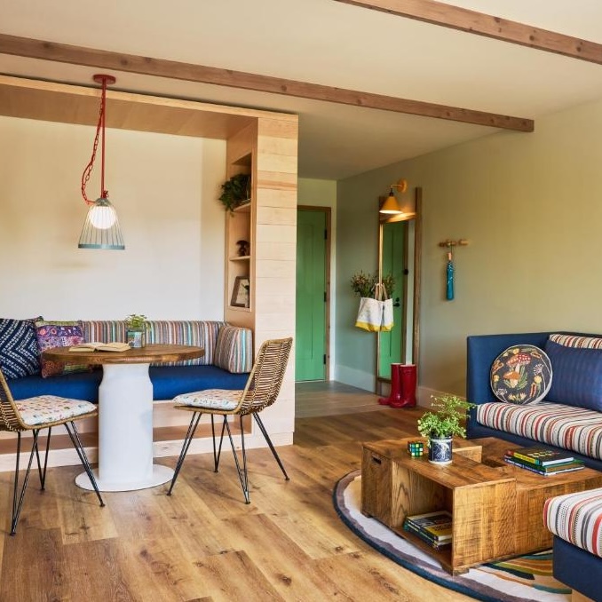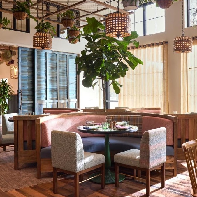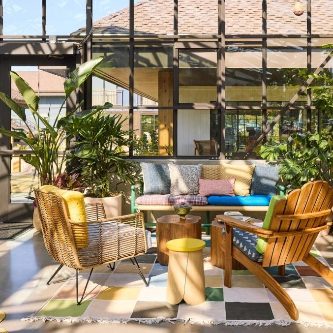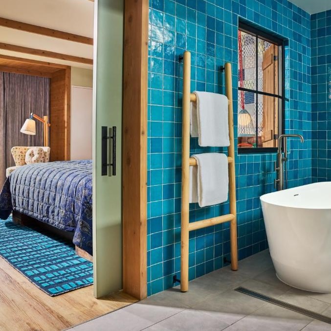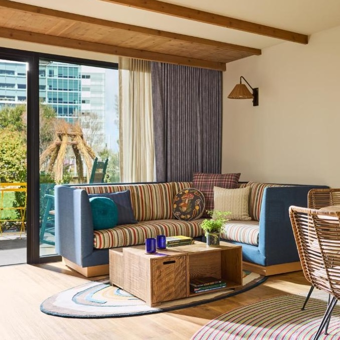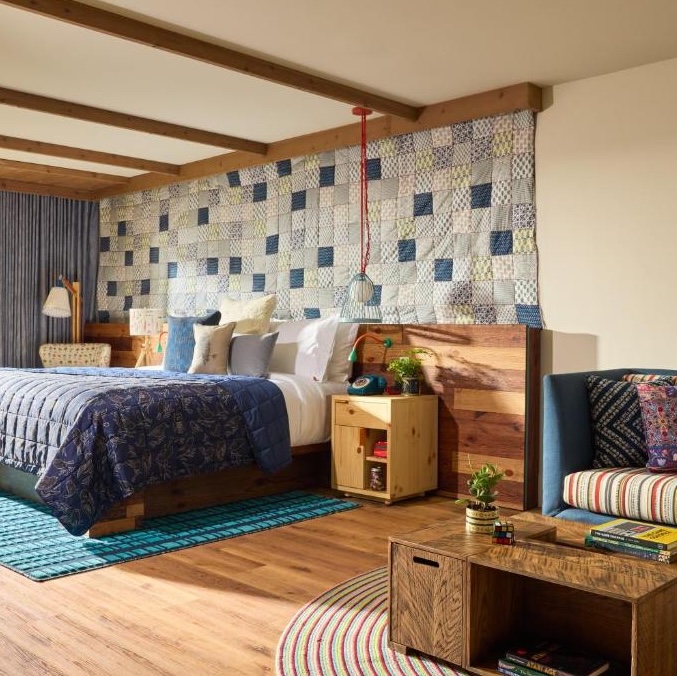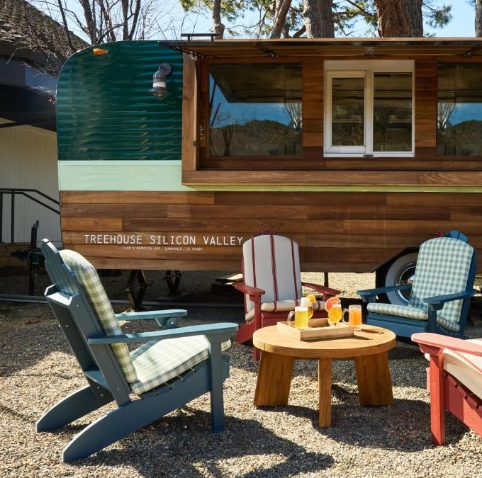 Treehouse Hotels’ first U.S. outpost brings a dose of playfulness to the tech capital. Hidden among office blocks, the property opens into a greenhouse-style lobby, a lawn-framed pool, and rooms that revel in nostalgia: stump-shaped tables, owl-embroidered pillows, record players, even toy soldiers in Mason jars. Dining includes a lively beer garden, a breezy café, and Valley Goat, the signature restaurant. Families and business travelers alike find it appealing, with kid-sized robes, tent packages, and plenty of whimsical touches that keep the sheer sense of fun threaded through the stay.